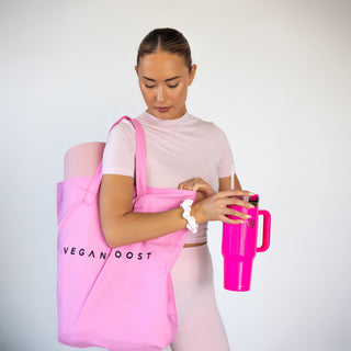 Ontdek de nieuwe Veganboost tote bag – een echte eyecatcher die stijl, duurzaamheid en vakmanschap combineert. Deze prachtige tas is met de hand gemaakt, waarbij elk detail zorgvuldig is uitgewerkt. Het logo is met hoogwaardig zwart garen geborduurd op de voorkant, terwijl het grote VB-logo subtiel als stiksels in de stof is verwerkt voor een elegante, ton-sur-ton look.