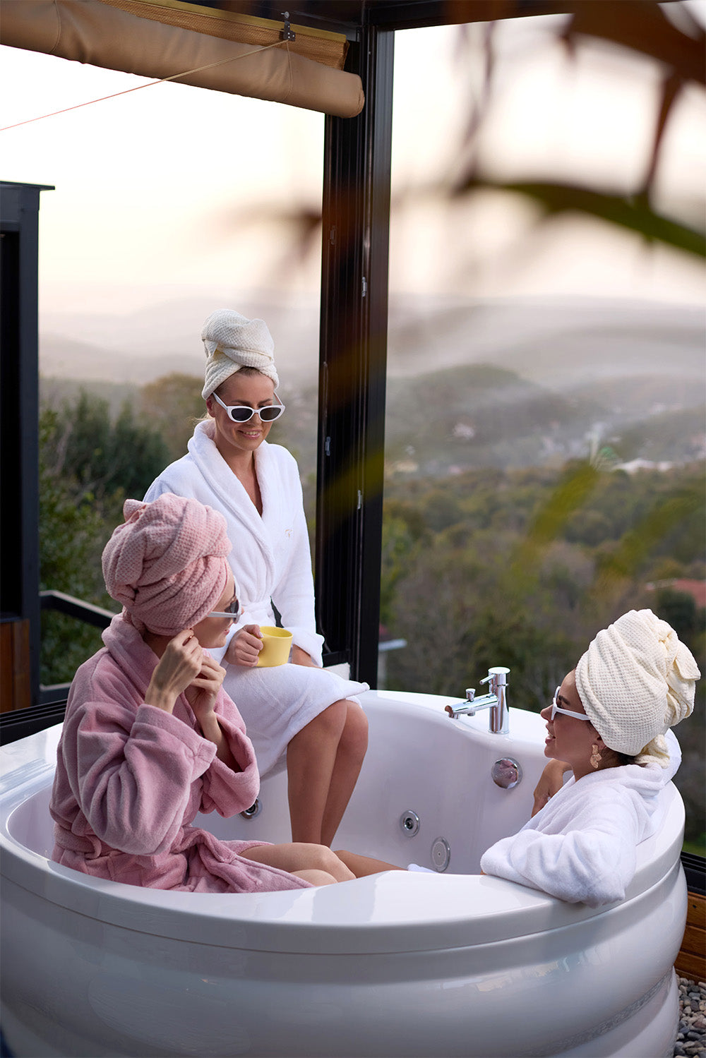 - Secure - flip it back, draai de handdoek over je hoofd en zet het vast in de lus.