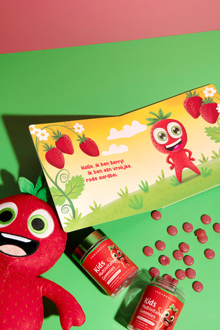 Daarom hebben we Berry verder tot leven gebracht: een vrolijke held die kinderen op een leuke manier voorlicht over gezond zijn. Met Berry’s eigen kinderboek, limited edition kleurpotloden én een knuffelvriendje wordt gezondheid tastbaar én leuk. Alles is verkrijgbaar in een complete giftbox (of los).