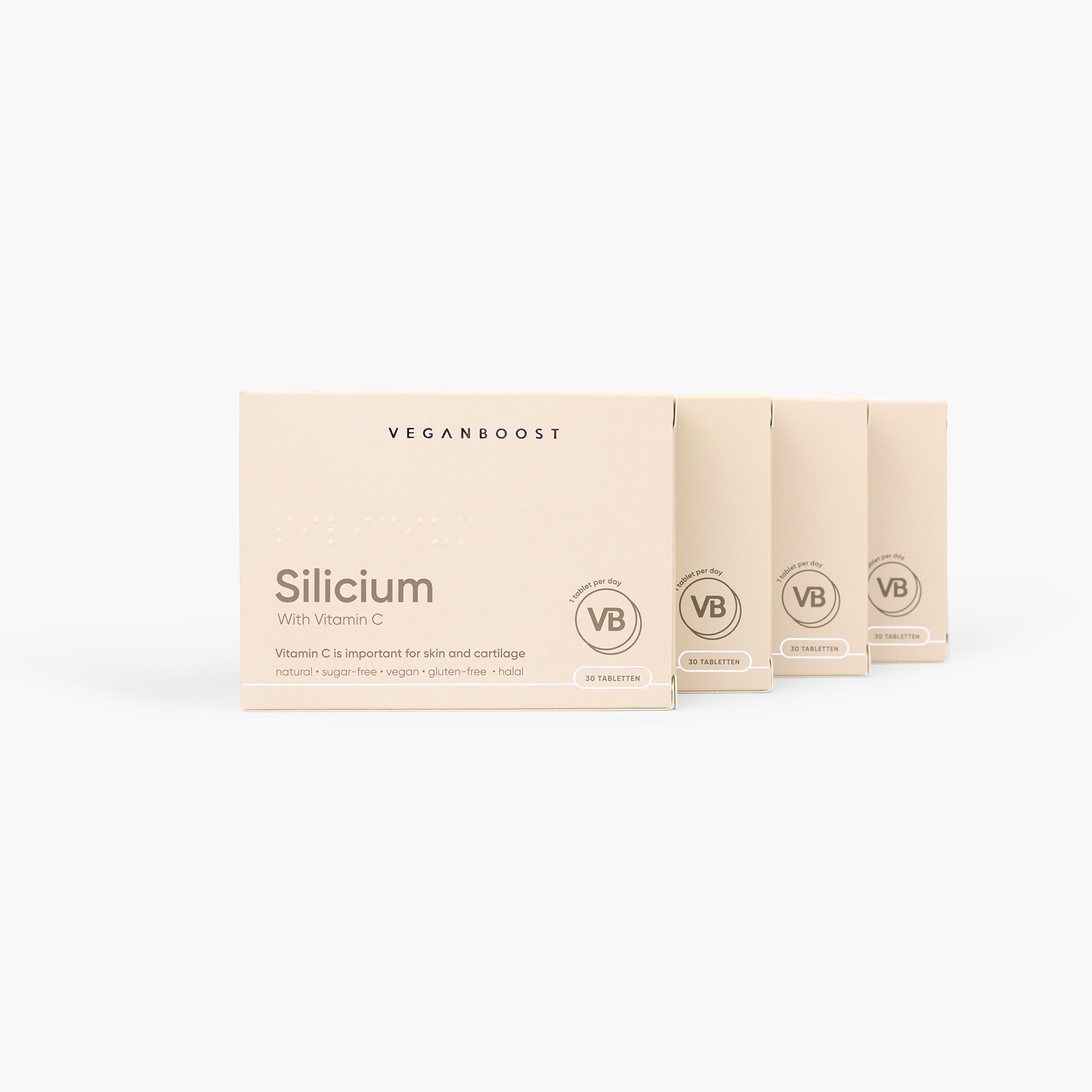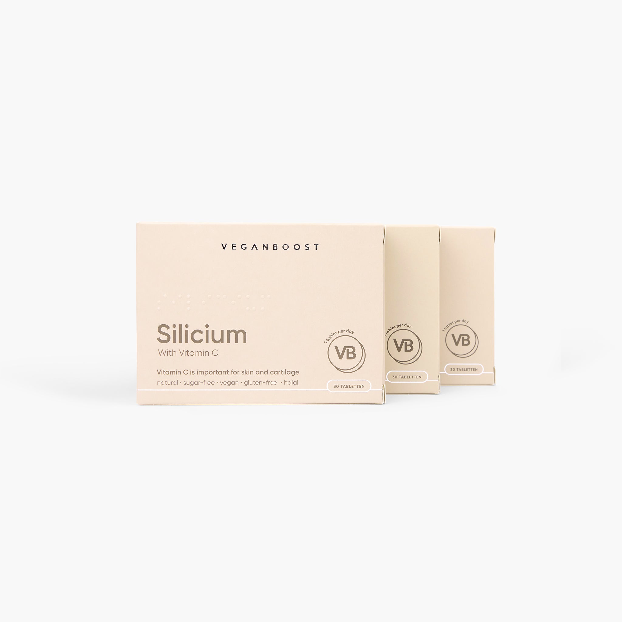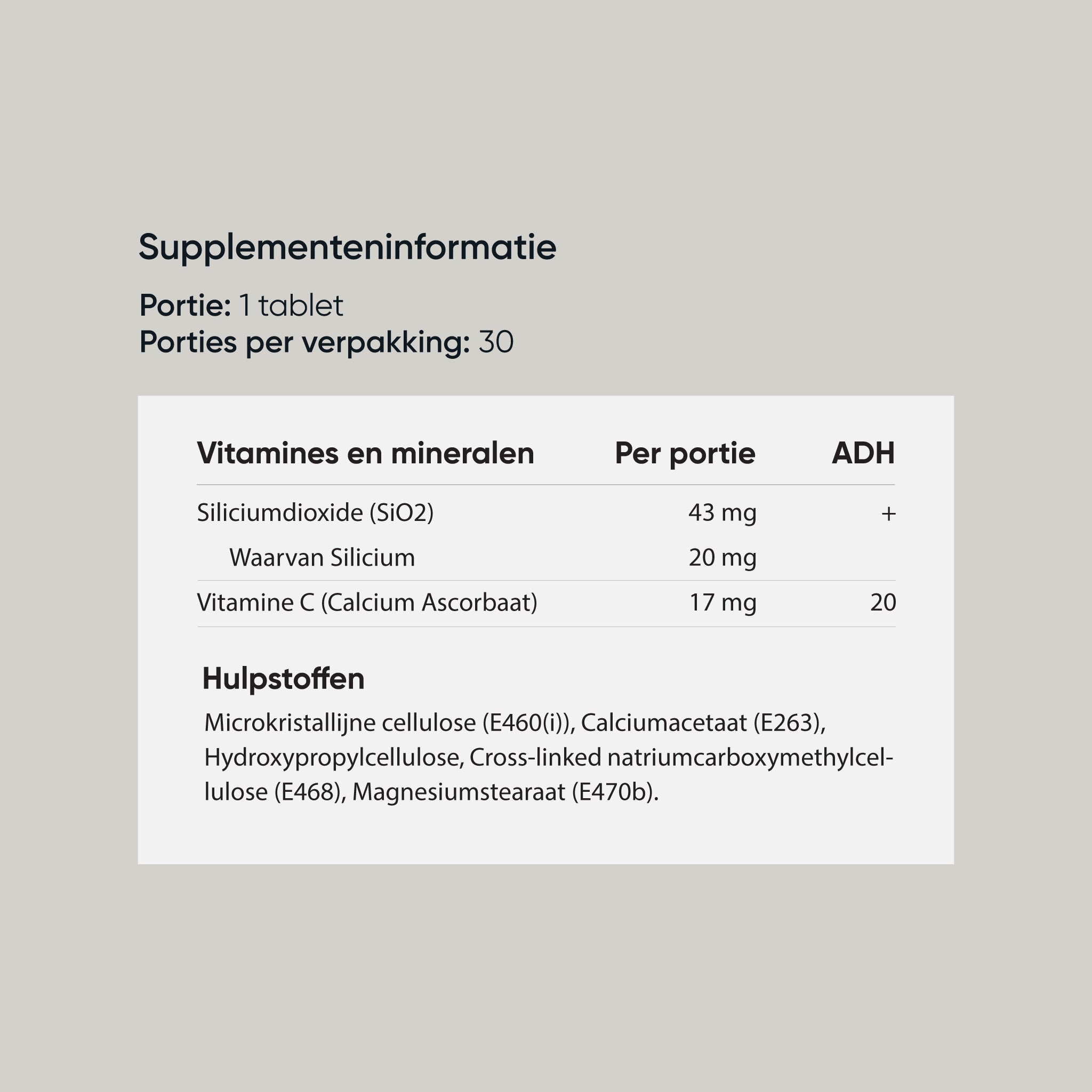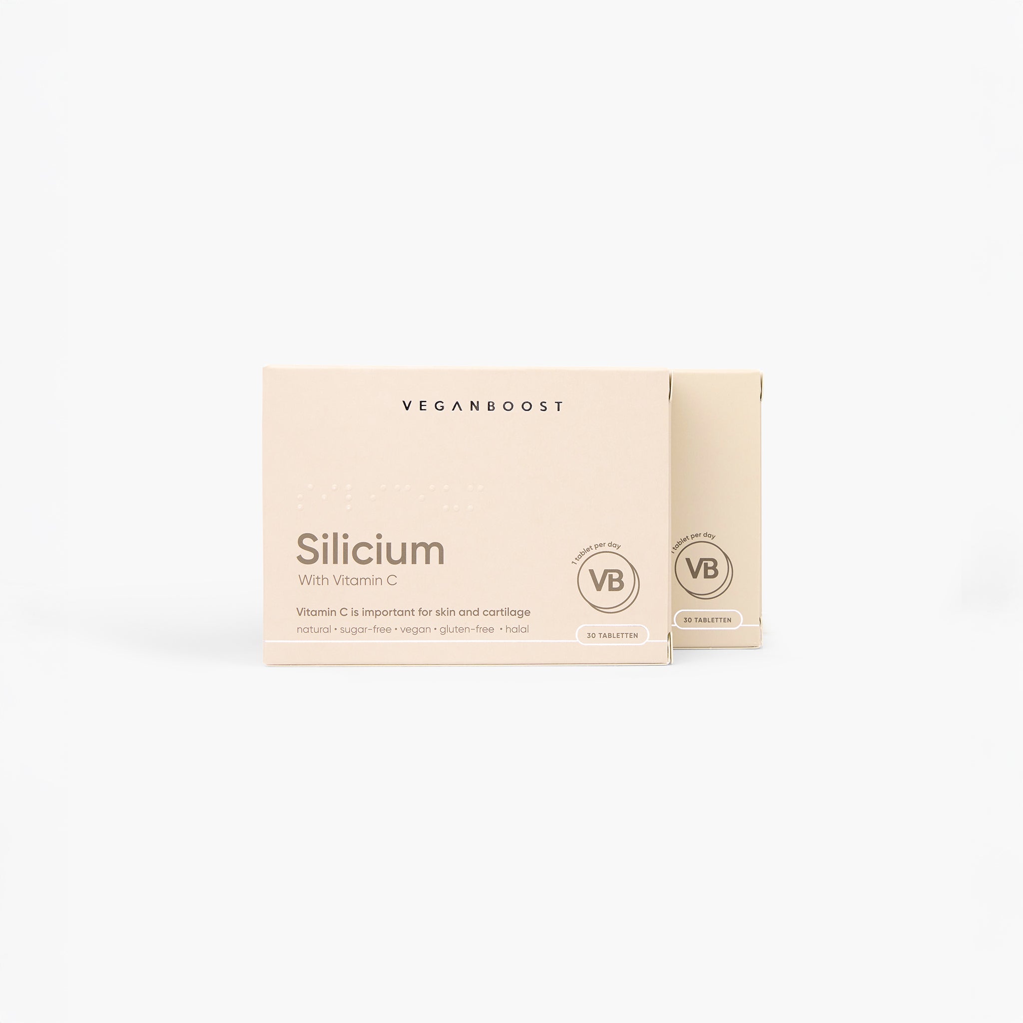 Geef huid, haar, nagels, botten én kraakbeen dagelijks een duwtje in de juiste richting. Veganboost Silicium + Vitamine C bevat een innovatieve vorm van silicium die goed opgenomen wordt door het lichaam.