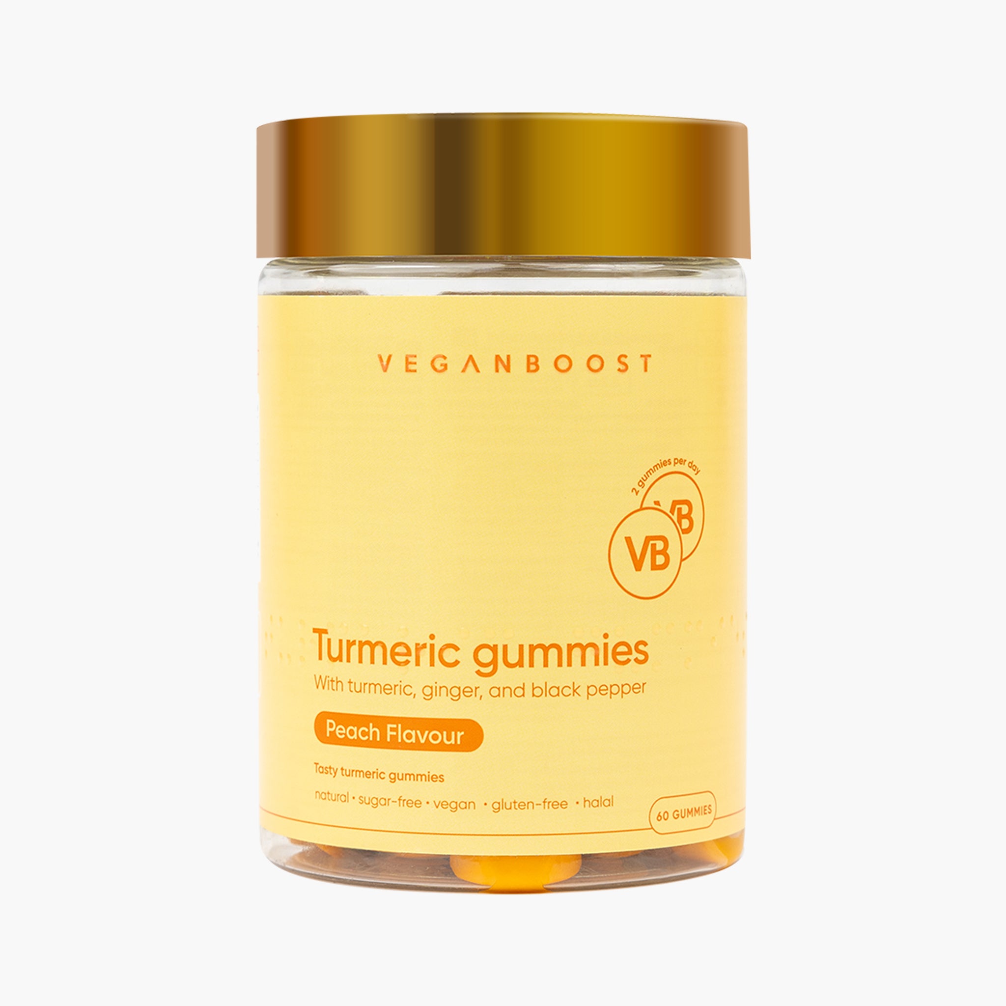 Soepele gewrichten, gezonde spijsvertering & dagelijkse wellnessVeganboost Turmeric Gummies are not just any gummies. It is a vegan supplement with turmeric, ginger and black pepper extracts for overall health and well-being. Turmeric helps keep joints flexible* and plays a role in maintaining flexible/strong muscles*. Black pepper extract helps maintain natural digestive functions*.