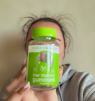 "Door psoriasis op mijn hoofdhuid vielen mijn haren erg uit. In maart 2024 maakte ik kennis met de VeganBoost hair gummies en nu zijn we 4 maanden verder. Na veel dingen geprobeerd te hebben, kan ik met geluk zeggen dat dit het enige is wat heeft geholpen voor het bevorderen van mijn haargroei. Mijn haar is dikker, gezonder en langer!"