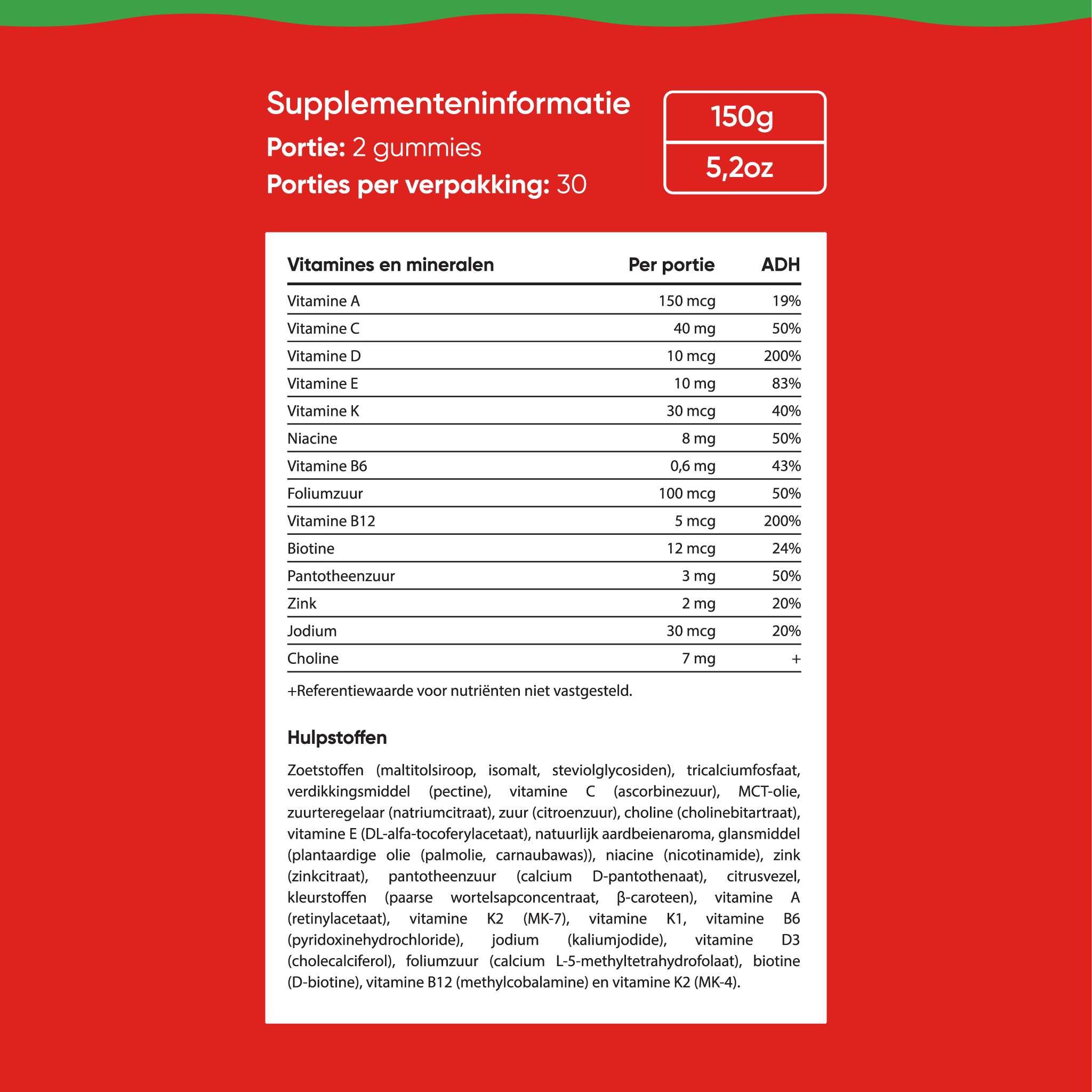 Kids Multivitamine Gummies zijn speciaal samengesteld om, ter aanvulling op de voeding, de dagelijkse inname van essentiële vitamines bij kinderen te ondersteunen. De kauwbare gummies bevatten een combinatie van belangrijke vitamines, waaronder vitamine C, D, A, E, B12 en vitamine K.