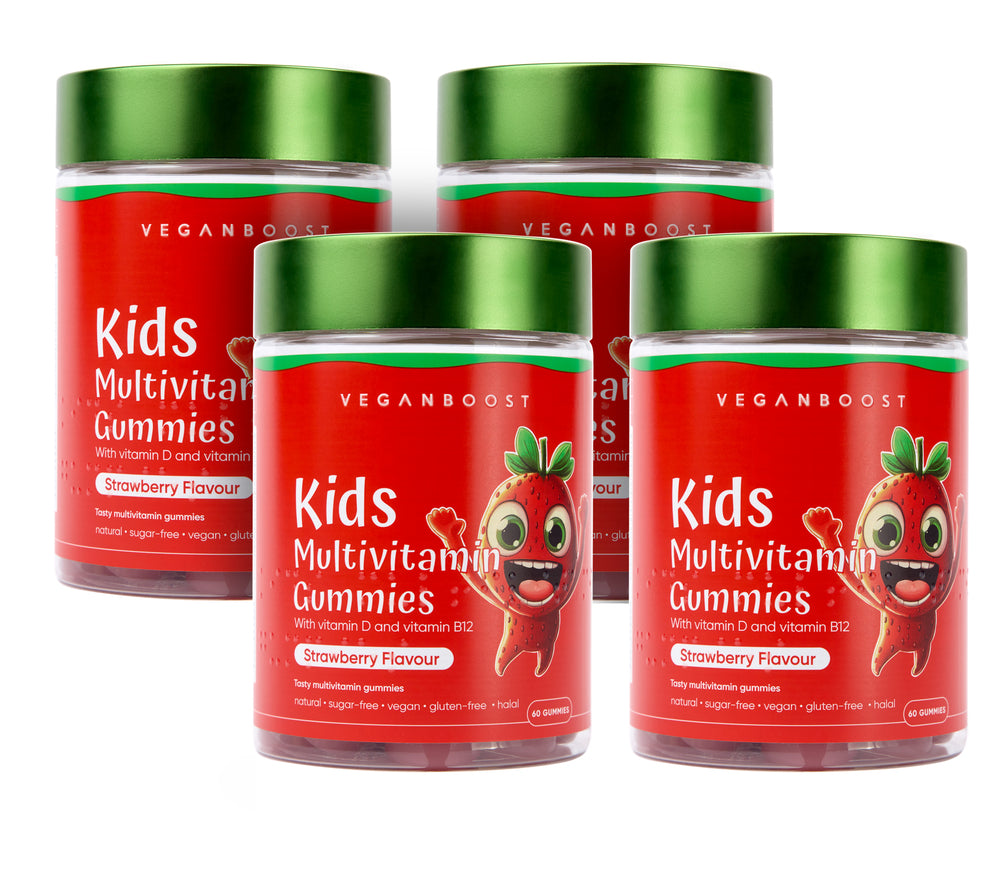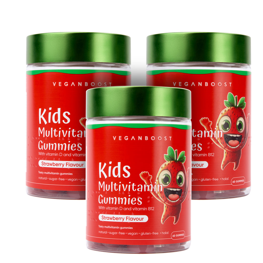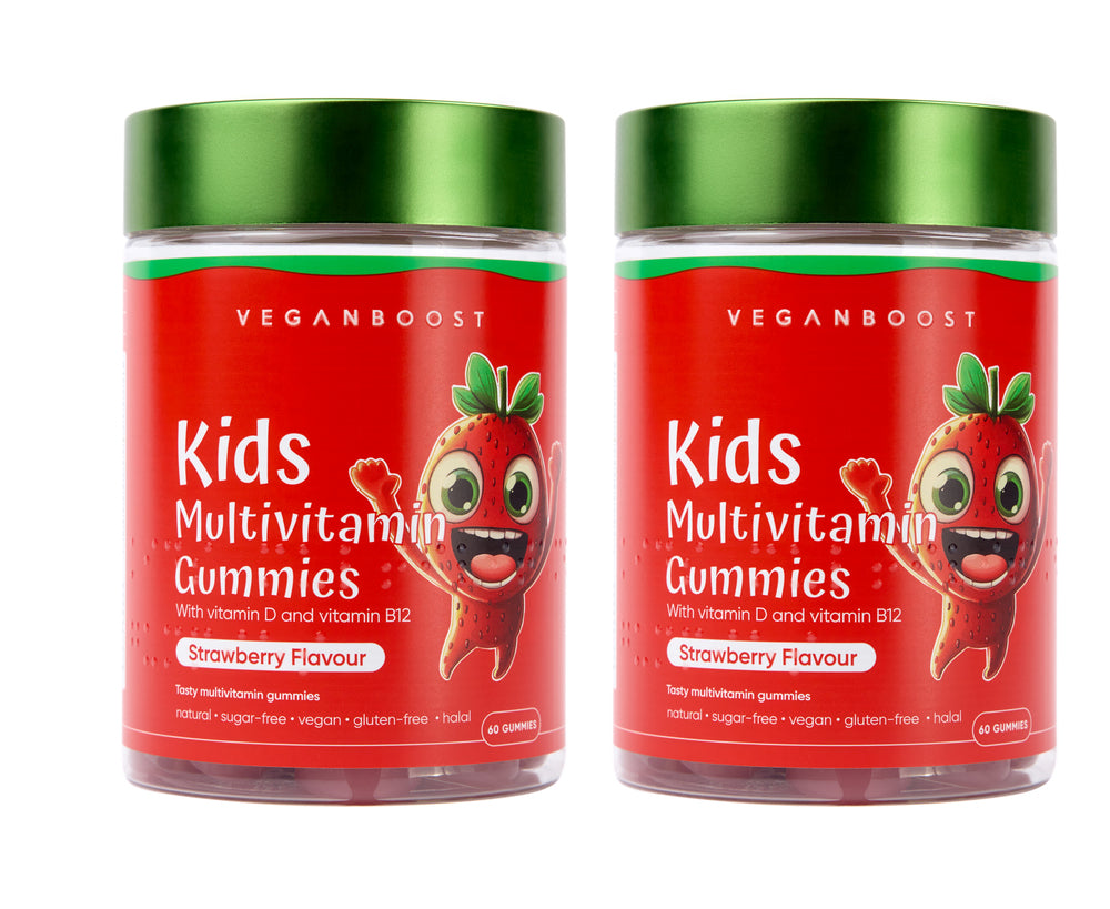 Veganboost gummies zijn veganistisch, dierproefvrij, suikervrij en hebben een heerlijke aardbeiensmaak.