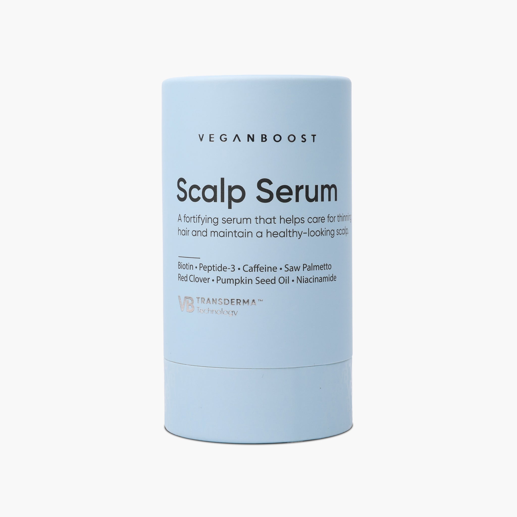 Veganboost Scalp Serum is een geavanceerd hoofdhuidserum dat dankzij gepatenteerde VB Transderma™ Technology en een rijke mix van biotine, cafeïne en natuurlijke extracten de hoofdhuid verzorgt en zichtbaar bijdraagt aan sterker, voller en gezonder ogend haar.